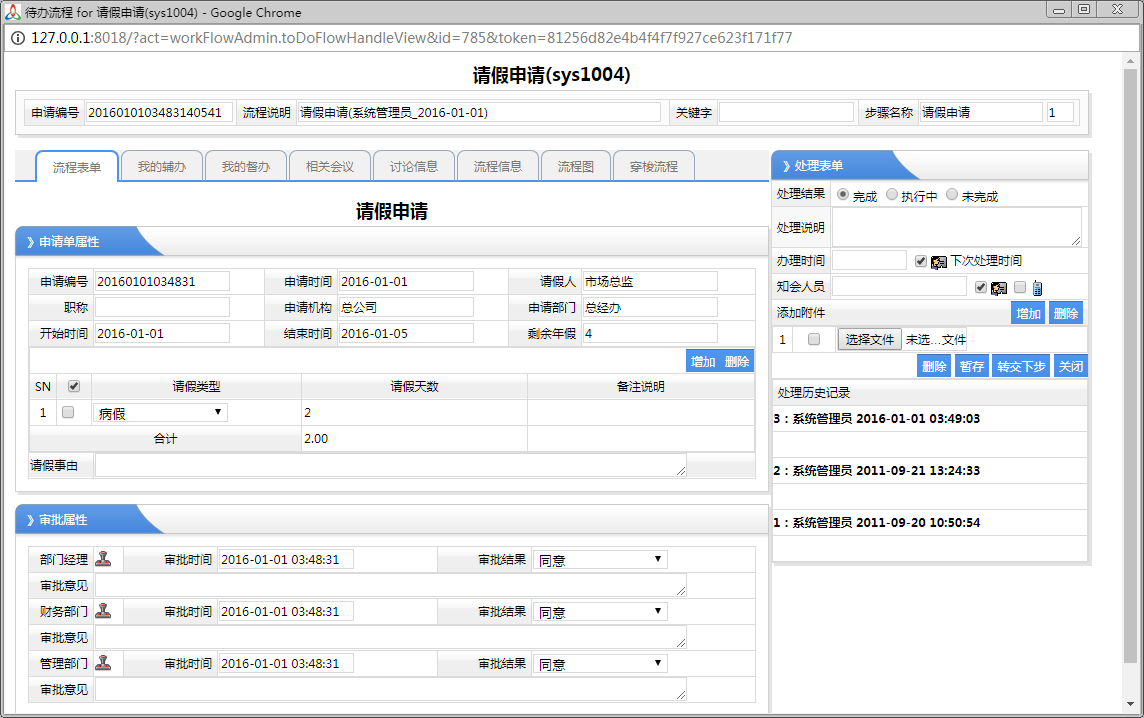 13、表单留痕:每次处理都一个表单留痕,记录每一步操作,流程表单改变的内容