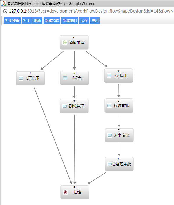 流程设计 完全基于图形编辑;支持拖拉图形;支持自定义上传图片成为流程步骤;支持备注说明;支持权限设计;在线保存图形位置